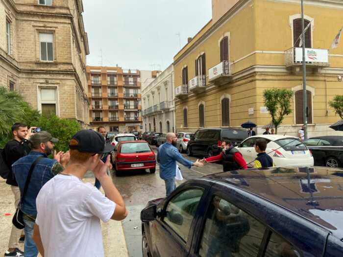 Entusiasmo, cori, fumogeni e tante belle speranze. Nonostante la pioggia è stata grande l’accoglienza riservata a Trani per il Presidente della United Sly da parte di un gruppo di tifosi locali. Quarto, giunto in città nel tardo pomeriggio, ha incontrato al Comune il Sindaco di Trani Amedeo Bottaro per parlare del futuro calcistico di Trani. Tanti i temi: dallo stadio, alle prospettive future, passando per bomber Picci. Insieme a Quarto era presente il Direttore Sportivo Pierluigi De Lorenzis.